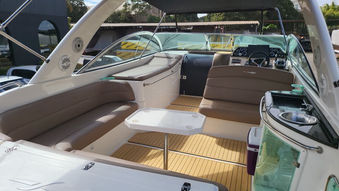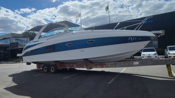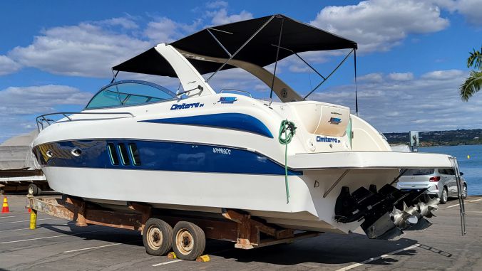 Motorização: 2 x motores de centro Mercruiser com 440 hp, rabeta bravo 3, gasolina