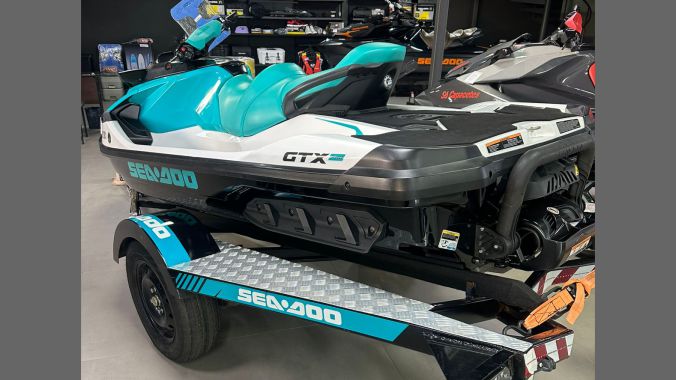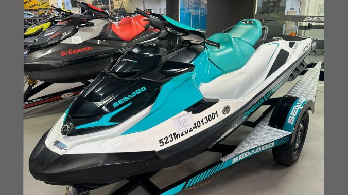 Moto aquática Sea-Doo GTX 130, modelo 2023. Equipada com motor Rotax 1630 ACE de 130 hp, sistema iBR de freio e reverso inteligentes, escada de reembarque, tanque de combustível 70 L, casco de fibra de vidro e muito mais! Capacidade para 3 passageiros. Embarcação em excelente estado, com apenas 45 horas de uso. Acompanha carreta rodoviária. Venha ver de perto e feche um excelente negócio!