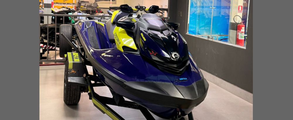 Sea-Doo RXP-X 300, ano 2021, uma moto aquática de visual esportivo, equipada com o potente motor Rotax supercharged com intercooler e 300 hp. Unidade com apenas 59 horas de uso. Dotada de diversos recursos especiais como o sistema de freio e reverso inteligente iBR, além de muito mais! Acompanha carreta rodoviária. Venha ver de perto!